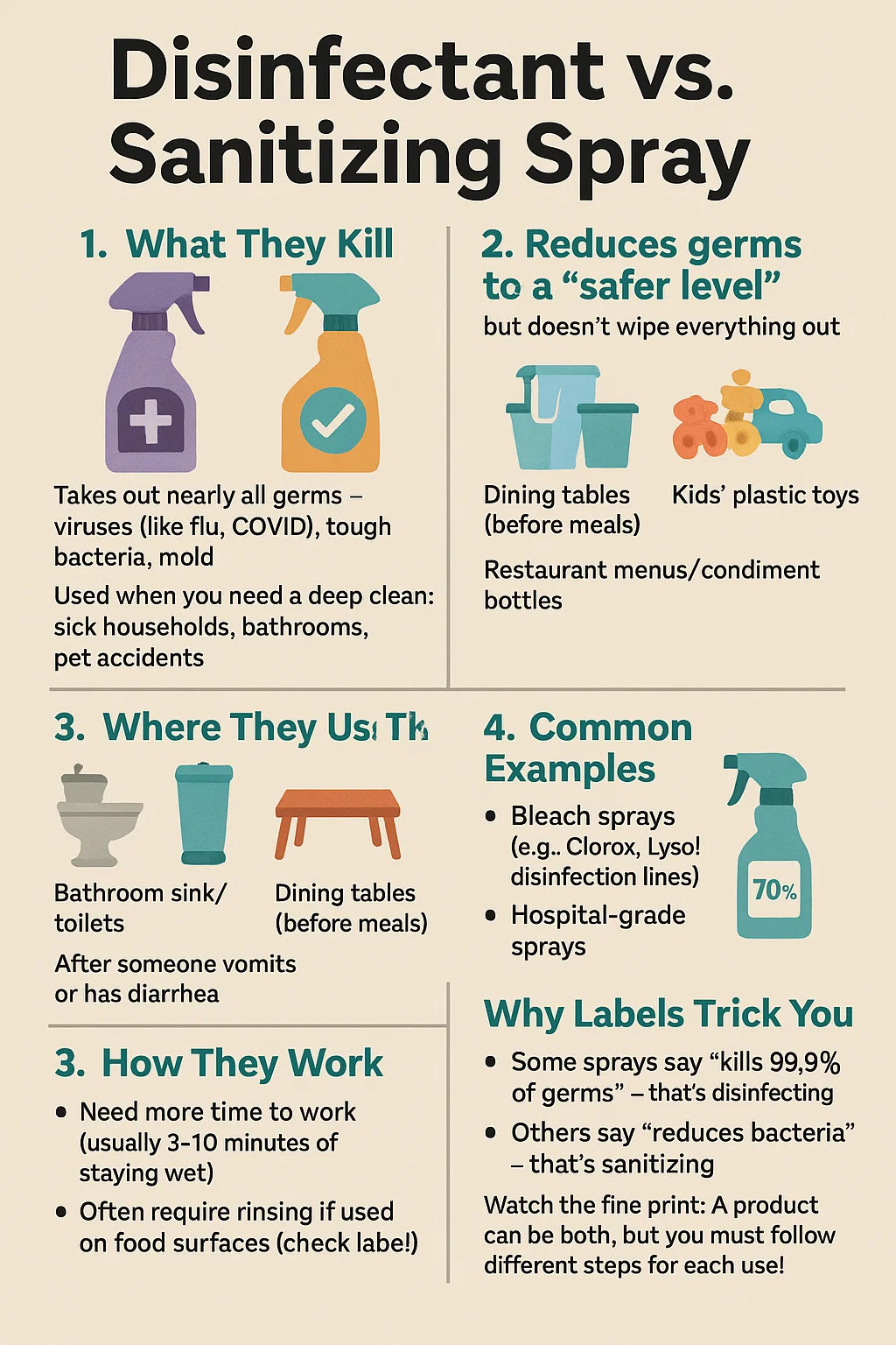 Oto różnica w świecie rzeczywistym pomiędzy spraye dezynfekcyjne i spraye dezynfekujące:
